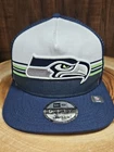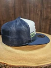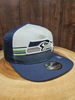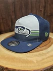 The Seattle Seahawks New Era 9Fifty Trucker Meshback Snapback Adjustable Hat Cap NFL is a sporty accessory perfect for any fan. It features the team's name and logo, making it a great addition to any collection. The hat is designed with a mesh back for breathability and an adjustable snapback closure for a comfortable fit. Ideal for men who love sports, this hat is perfect for any occasion, whether you're at a game or just out and about. It's made of high-quality materials and is sure to last for a long time. Get yours now and show your support for the Seattle Seahawks!