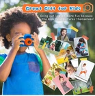 •CLEARER MOMENT RECORDED & MULTI-SCENE SELECTIONS: Equipped with auto Focus, 8.0 Mega pixels and 1080P Video. Greatly improved the definition of photos . Catch the wonderful joy moment for boys or girls. With Big head sticker shooting, children can take photos with frames, leave some hilarious photos with family or friends •UPGRADED DESIGN: Upgraded to dual-camera configuration, Easy to take selfies. Just open the switch key to enjoy the fun of taking photos. Include a portable lanyard hang, easy to carry and moving. Includes a video recorder and voice recorder for more creative ways to play •POWERFUL BATTERY LIFE: Continuously taking photos for 1-2 hours after full charged! Come with 1 x USB data line & 1 x 32 GB SD card to store thousands of photo •SAFE & SHOCKPROOF: This camera is used high quality soft plastic,more safe and comfortable for children’s skin. Shockproof shell provides effective anti-fall protection CHRISTMAS TOY FOR KIDS: Birthday, festival ,holiday gifts for boys and girls aged 3-10. Children love taking photo with extremely cute camera. Simply capture scene or animals on nature with family, experience the fun from nature. First step to develop kids as a talented photographer