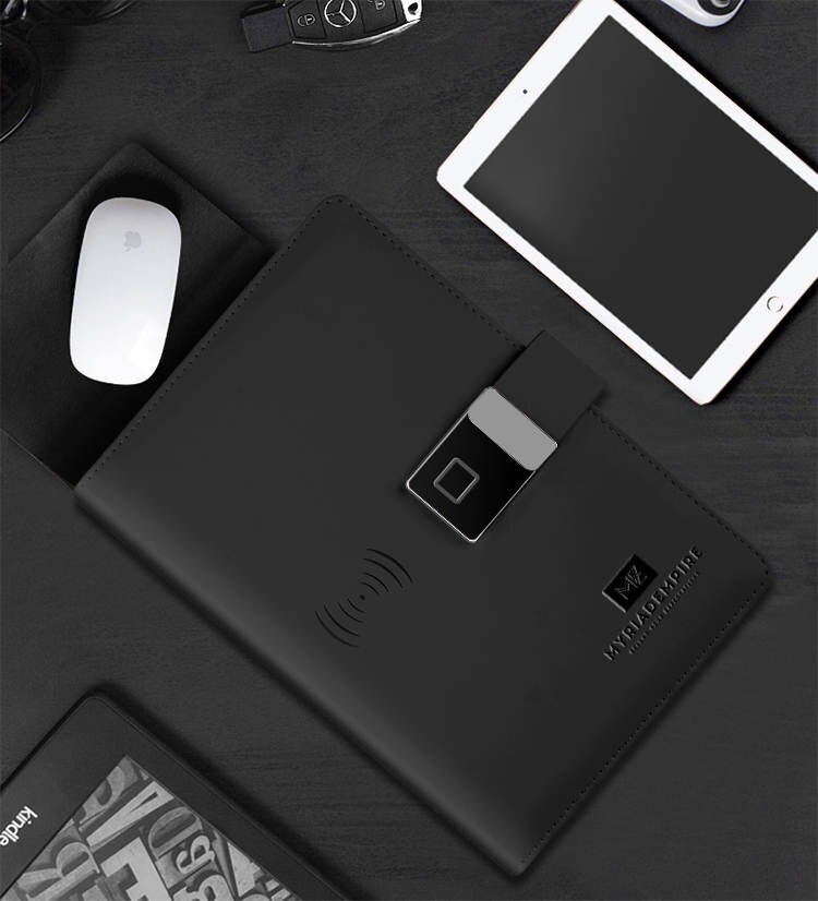 This notebook is the perfect tool for any busy business professional. Featuring a convenient fingerprint lock and wireless charging capabilities, it allows for easy and secure access to all your important notes and documents. The medium-sized, high-quality faux leather design is both durable and professional, making it a great addition to any office or workspace. With a daily format and plenty of space for notes and appointments, this notebook is ideal for keeping track of your busy schedule. The custom bundle includes one unit, and the notebook has not been modified in any way. Made in the United States, this notebook is sure to meet your every need.
