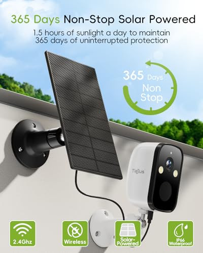 Cloud & Memory Card Storage: security camera wireless outdoor support memory cards and cloud storage. Recorded videos are backed up and accessible anytime. Multiple users can view live feeds. Includes 3 days recurring cloud storage at no cost Non-Stop Solar Powered: This solar security camera wireless outdoor solar-powered have ETFE solar panels, boosting efficiency by 22%, providing 365 days of protection with 1.5 hours of sunlight daily. Upgraded waterproofing and durable design withstand -4°F to 140°F O-KAM Pro APP & DIY Alarms: Solar security camera outdoor work with the O-KAM Pro app, featuring PIR sensor, AI detection, and 36 customizable alarm sounds. The app supports multiple cameras and sends real-time notifications and emails upon motion detection 2K Resolution & Full Color Night Vision: This solar wireless cameras for home security outdoor deliver 2K video quality with 2 white lights and 4 IR lights for clear images in complete darkness, and this solar camera outdoor wireless with a viewing range up to 55 feet Wireless & Easy Installation: This solar security camera outdoor solar-powered connect via 2.4GHz Wi-Fi.solar camera outdoor wireless easily install the solar panel and camera with provided brackets and screws for a wireless, hassle-free setup Suitable for Various Scenarios: The solar outdoor camera wireless are ideal for front doors, backyards, and more. Recommended for well-lit areas to ensure optimal solar charging and continuous operation