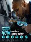 Cordless Plastic Welder Gun, Upgraded Seesii 40W Plastic Welding Kit with 4.0Ah Rechargeable Battery, 4 Types Wave Staples, LED Indicator & USB Cable Plastic Welder for Car Bumper Plastic Crack Repair Cordless Plastic Welding Kit: ✅ 【Cordless Design & 4.0Ah Rechargeable Battery】: Different from other welder tools, this upgraded plastic welder gun has built-in 3.7V 4000ma-h battery, 2-3 hour Charging time which can allow welding gun to continuously for at least 80 minutes. The newly cordless design eliminates the trouble of the winding cables and gives great convenience to carry around, which is suitable for indoor and outdoor use. ✅ 【High Performance Welding】: Our welding repair tool set has 40W power, it generates enough heat in 3-5s to quickly bond the (included) Staple weld to the repairable surface for a solid hold. Just choose the right staple, insert into the brass holder, press power button, wait a few seconds, and let staple melt into plastic parts slowly. Making your work more convenient, fast and accurate. ✅ 【4 Different Types of Staples】:This welding repair tool kit is designed to repair the plastic parts of the car, equipped with 4 different types of staples(200pcs) to meet your different needs. This stainless steel staple will not rust and will not hurt the surface of the automobile.Restore your broken parts, prolong its service life and save money. Strong for shock and twist after repairing. ✅ 【Exquisite Design & Safe to Use】:The plastic welding machine torch panel is equipped with three different colored lights, can prompt your temperature level. It can heat up to 400℃/752℉ in a matter of seconds, quickly meeting the operating temperature standards. And built-in a light on the front of our plastic welding machine, the operation is more convenient and safer. ✅【Entry Level Package】Ergonomic design, suitable for palm. The rubber handle has a comfortable grip and will not feel tired for a long time holding. Quick and easy operation. Just melts the staple into the plastic. No training required. Learn to use in seconds. A solid entry level package that gets the job done. This tool works you can’t go wrong. ✅【Wide Application】It can thermally cut or dissolve soluble materials,repairs at least 98% of the plastics on the market. Very useful tool that everyone will find an application for (since so many of our daily products are made of different types of plastics). Perfect for repairing: bumper, dashboard, lamp holder, plastic ring, radiator, spoiler, handles, headlights, plastic wings, car and motorcycle plastic device, etc, helping you achieve more uses. 🎁【Friendly Accessories & Excellent After-Sales Services】:The package include 1 x Cordless Plastic welding gun,1 x USB charging cable, 200 x Staples,1 x Pliers,1 x Manual,1 x Suitcase for you.