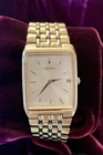 Seiko Men’s Watch Slim Gold Tank Quartz w Date- Sold for Parts This is an attractive men’s watch with the slim look. The band is marked Seiko. Preowned Seiko Mens Watch with case number 7N39-5A39. Marked Water Resistant on the back. Japan Movement. Stainless Steel base metal. About 7” in Legnth. Selling for parts. Has new battery. I don’t see any damage, just normal water and tear on a preowned watch. . There are some minor scratches on the crystal and some scratches on the back plate. See all photos and ask questions before purchasing. This is a nice men’s Seiko watch. Thank you for looking.