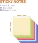 About This Item: 【Product Size】Sticky notes are 9 pads, 9 colors. Each pad has 56 sheets, totaling 504 sheets. The size of each sheet is 3 inches * 3 inches to fully meet your needs for a variety of uses of sticky notes, making your work and study more organized. 【9 Different COLORS】The sticky notes come in 9 different colors,not only warm colors but also cool colors!Each color can be used according to your mood. You can choose the color you want to use at any time and any place, for better marking and sorting. 【Rapid Memorization】You can mark the key points of your study and work on the sticky note, which is faster than the daily ordinary memorization, so you won't miss the important points of your study and important matters of your work. The sticky note is the perfect companion for your study and work. 【Strong Adhesive】This sticky note can be easily stick and re-stick to books, computers, and laptops to ensure that it stays in place but does not leave adhesive residue. It can be easily removed and moved to other locations to protect your books and important documents.