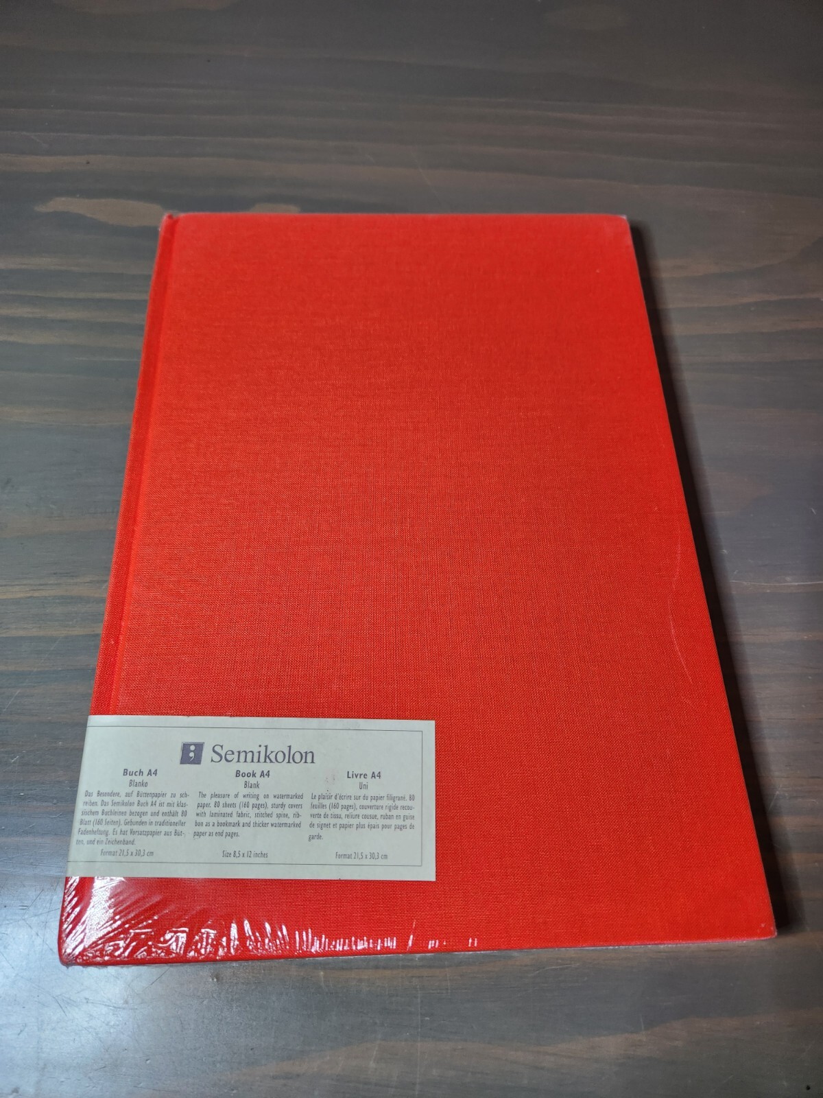 Semikolon A4 Journal - Sketchbook - Notebook - Hardcover Linen - 80/160 Cream White Page - ORANGE This is a older product by Semikolon, likely OOP. I had trouble finding exact matches for comps, so I will match any price upon proof of EXACT SAME product listing. This is an unused, high quality item in good shape.