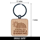 Sending You Sunshine and Rainbows Engraved Wood Square Keychain Tag Charm