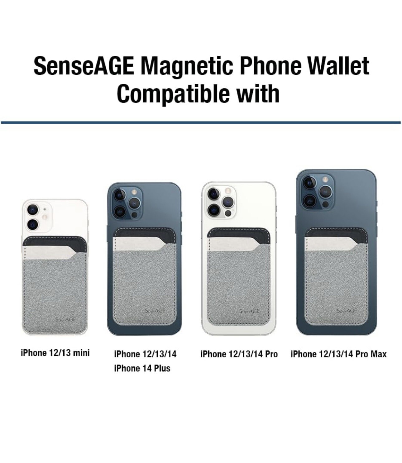 CARD HOLDER ONLY, NO PHONE CASE INCLUDED Introducing the SenseAGE Card Holder for MagSafe iPhone 12-14 Cases. This sleek and slim back case is perfect for Apple iPhone 12,13 and 14 users who want to keep their cards and phone together in one handy package. The card holder is available in Gray, making it convenient and subtle for those on the go. Designed with a focus on both functionality and style, this back case is made specifically for Apple iPhone 12, 13, and 14 models. It is compatible with a range of accessories, and its slim design allows for easy access to all ports and buttons. Whether you're heading to work or out on the town, the SenseAGE Card Holder is the perfect accessory to keep your phone and cards together in style.