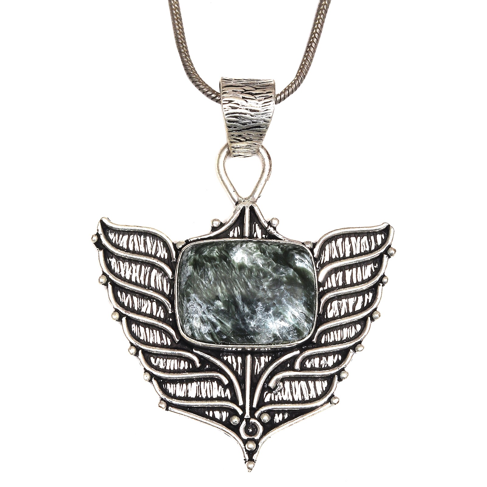 Necklace Length: 20 in Era: Undated Main Stone Creation: Natural Gemstone Clarity Grade: Eye Clean Main Stone Treatment: Not Enhanced Closure: Hook Pendant Shape: Rectangle Main Stone Length: 19.05 mm gtin13: does not apply Metal: Silver Plated Chain Type: Snake Main Stone Shape: Rectangle Vintage: No Style: Pendant, Locket, Chain, Tennis Antique: Yes Handmade: Yes Main Stone Width: 12.7 mm Occasion: Anniversary, Birthday, Christmas, Engagement, Mother's Day, Valentine's Day, Wedding Main Stone Color: Green UPC: does not apply Cut Grade: Excellent Base Metal: Brass Colour: Green Main Stone: Seraphinite Wholesale: Yes Country of Origin: India Country/Region of Manufacture: India Item Length: 2.25" Customised: No Material: Stone, Gemstone, Crystal, Cotton Setting Style: Bezel Brand: Unbranded Features: Adjustable, Engraved, Stackable Number of Gemstones: 1 Secondary Stone: No Stone Main Stone Colour: Green Customized: No Color: Green Pendant/Locket Type: Charm Seller Warranty: No Type: Pendant Main Stone Depth: 8 mm Theme: Beauty, Bohemian, Ethnic, Family & Friends Metal Purity: Unknown
