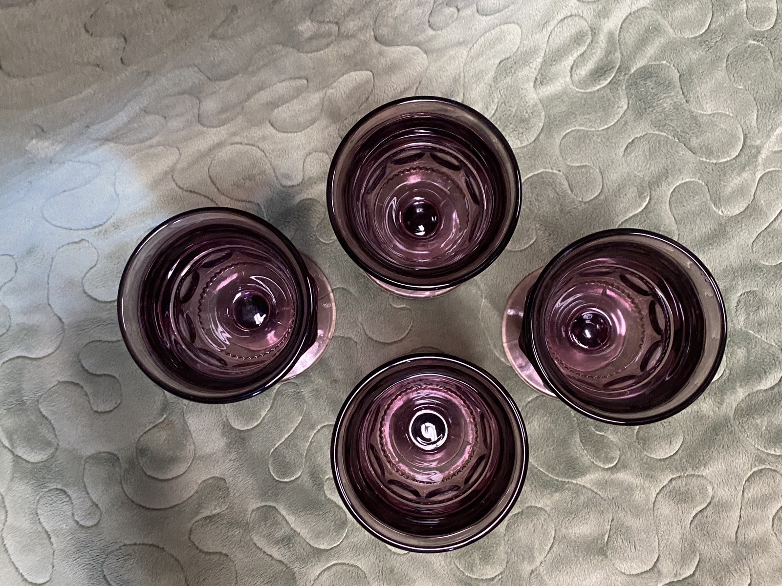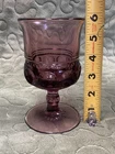 The Indiana Colony Glass Kings Crown Thumbprint Goblets ——— set of 4 vintage amethyst glass goblets from the 1960s. ——— Goblets are 5.75” tall 3.25” wide