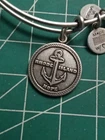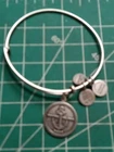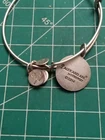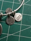 This set of 2 Alex and Ani Rhode Island bangle bracelets in silver tone are a stylish and collectible accessory for any jewelry lover. The adjustable slide closure and round shape make them easy to wear for any occasion, such as birthdays. Handcrafted in the United States, these bracelets are signed by the brand and feature a dangle charm. Perfect for adding a touch of charm to any outfit, these silver tone bangles are a must-have for any fashion-forward individual. 1 is new with tags ,the other as is newish