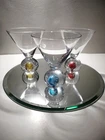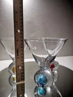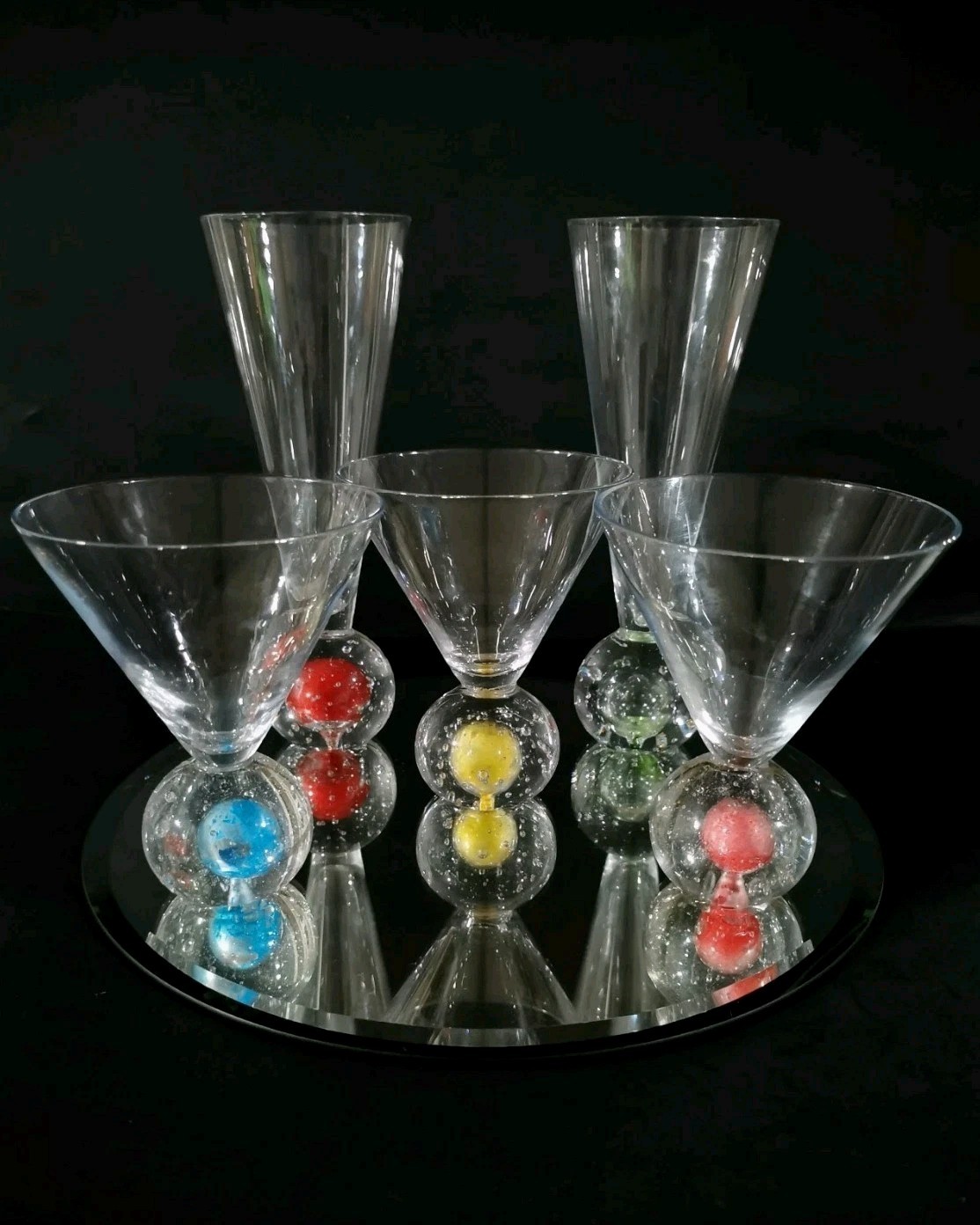 5 Martini Cocktail Glasses with Bubble Bases in Red, Blue, Yellow & Green 🍸 These are hand blown with heavy round bottoms for stability. There is a Mid Century vibe with the style but I'm guessing they were made in the 90's. In this set of 5 are 3 short 5" martini glasses and 2 tall 8 1/2" cocktail glasses, both hold 8 ounces. They're in great condition with no chips or cracks. Please see the photos for details of the condition and measurements. Thank you!