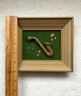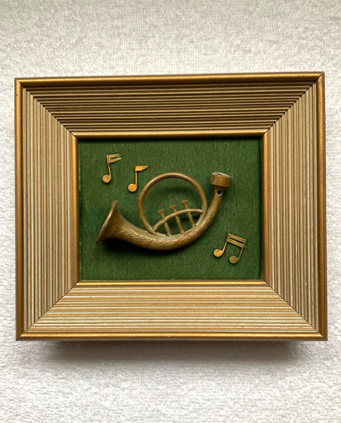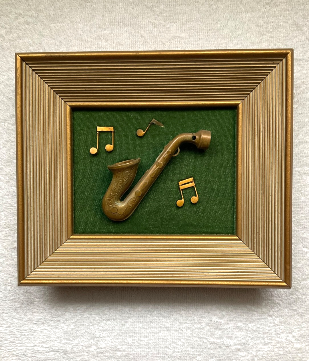 This set of 3 framed musical wind instruments in a vintage wall 3D shadow box decor features a unique and handmade design. The shadow box art showcases miniature replicas of various musical instruments, creating a jazzy and Americana-themed display. This set is perfect for those who appreciate music, events, festivals, cities, and towns. Each shadow box measures 6 inches in height, 7 inches in width and 1-1/4 inches in depth. French horn, trumpet and saxophone are each displayed with musical notes on a green felt background.