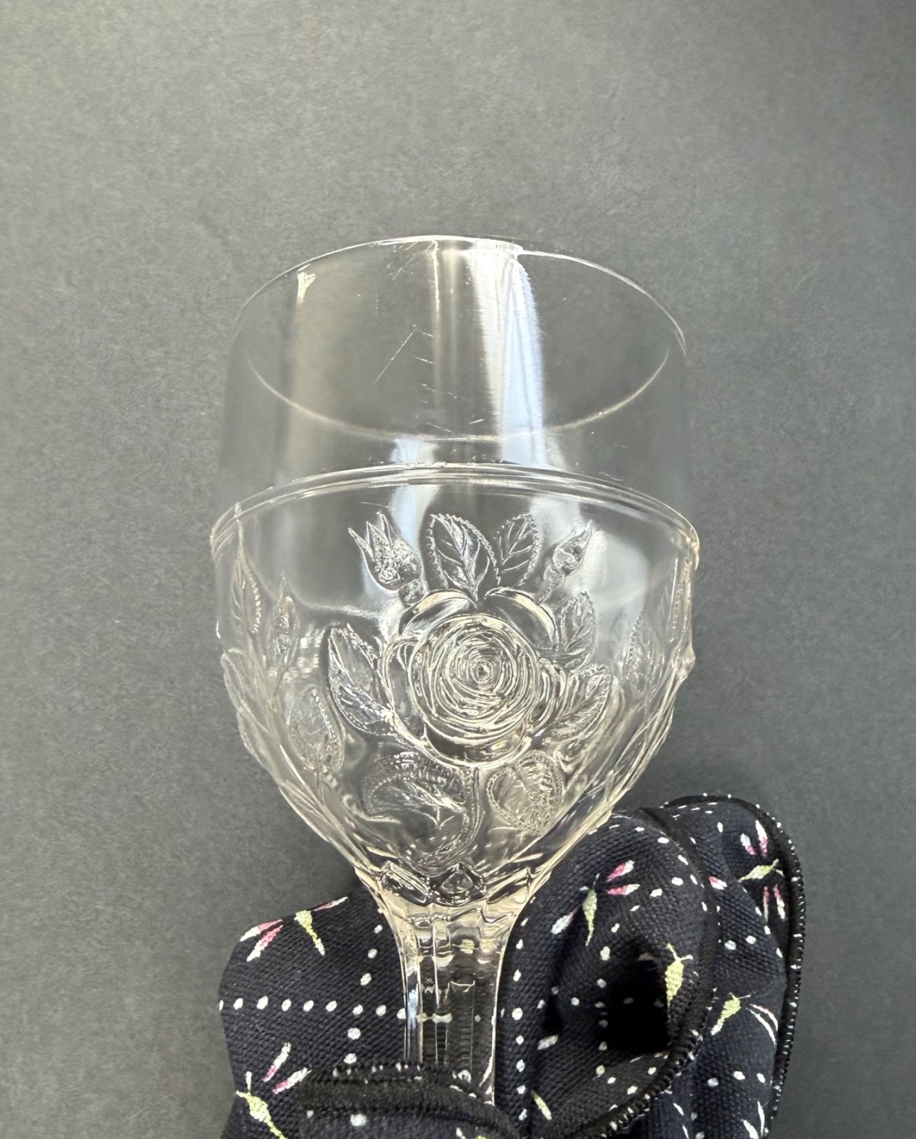 *This is not a new set and does not ship in its original packaging. Items are in good condition. But show signs of wear such as scratches. According to Replacements.com item was discontinued circa: 1870- Approx. measurements: Width- 3 1/4 inches Height- 6 1/4 inches Fits 11 ounces to the rim.