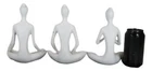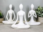 • These Yoga Meditation Women Figurines are made of polyresin, hand painted and polished. • They each measures 7.75" tall, 5.5" wide and 3.5" deep approximately. They weigh about 2.5 pounds in total. • These elegant figurines of a woman in meditation are calming influence in our busy world. Fluid lines and an abstract silhouette inspire a sense of grace, which we can try to embody in our own lives. An antique white wash color gives the finish a timeless rustic appeal. Peacefully seated in the lotus position, she is a vision of centeredness, balance, and deep concentration. • Props in photos are not included with the items. Ebros Set of 3 Zen Calming Meditation Women Yoga Mudra Poses Abstract Figurines Video will open in a new window Using the mobile app? Copy this link into your browser: