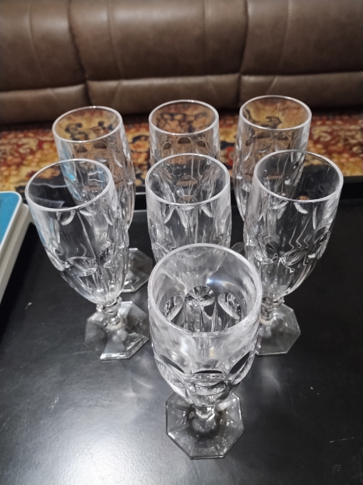 One of the 7 was broken in shipping, but everything was packaged well enough. Otherwise the goblets were as described.