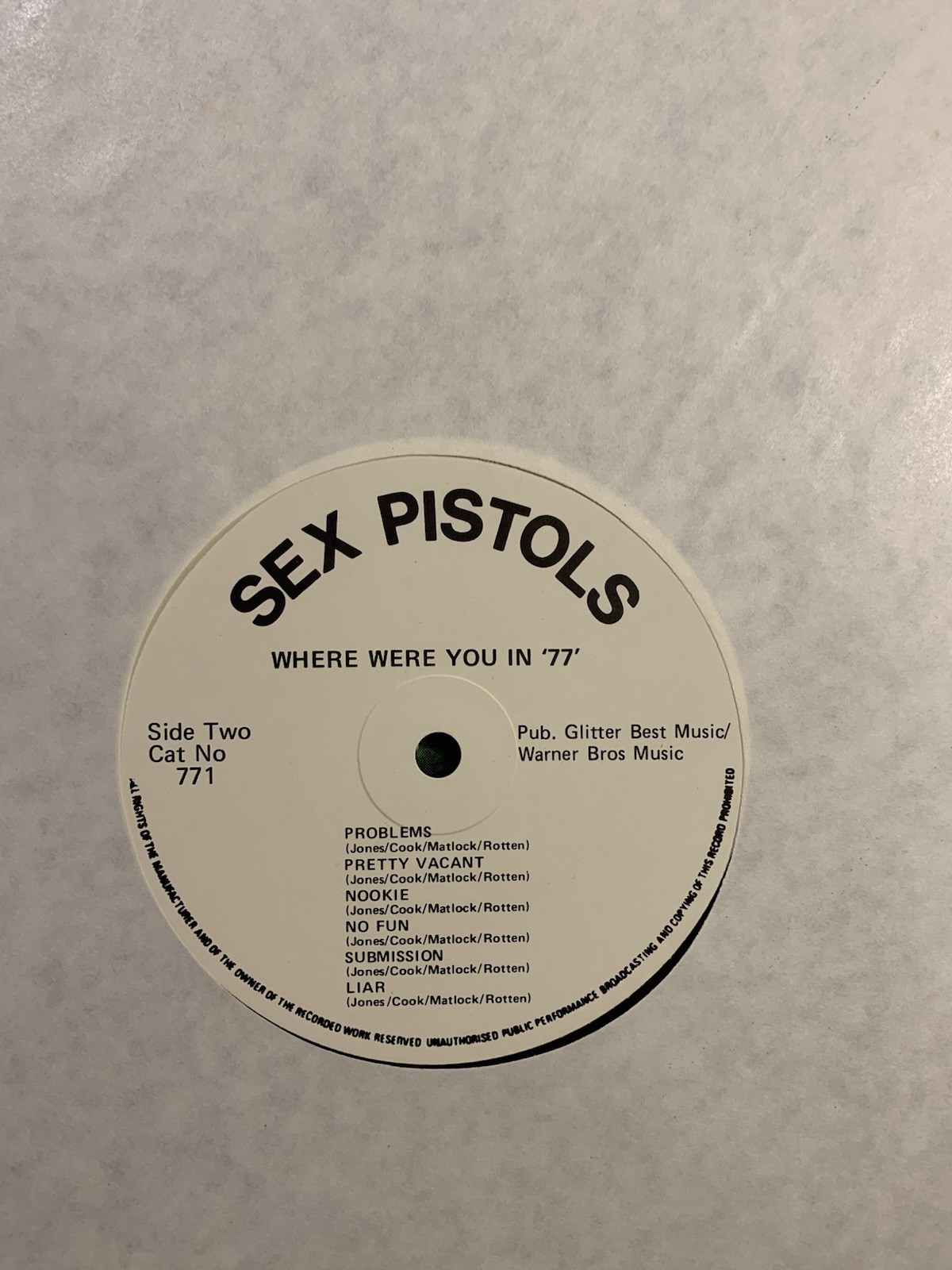 The Sex Pistols' "Where Were You In '77?" 12” vinyl record, (released in 1985 by 77 Records) captures the raw energy and rebellious spirit of a live UK punk show during the early days of the genre. The live recording at the Stowaway Club, Newport, Gwent, 23 December 1977 was taped during the 'Never Mind the Bans Tour'. This is classic black wax housed in the original white inner paper sleeve. Condition is Very Good. Please see the pictures, more can be added on request.