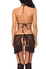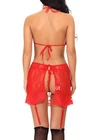 Specification: 100% Brand new and high quality Color: Black / Red /Purple Material: Lace +Polyester Features: It's definitely a piece to spice up bedroom activities. Soft material is very attractive and hot for drawing attention from your lover. Special and modern design makes you more attractive, charming, fashion and chic Perfect gift for ladies ,wife and girlfriend. The Necessity for your sexy wardrobe. Package included: 1 Bra & Skirt+G string+Garter Belt (the stocking is not included)