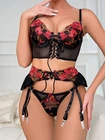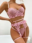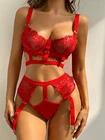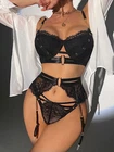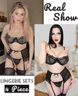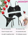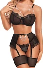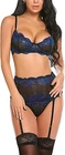 95% Polyester, 5% Spandex Imported Hook and Eye closure Push Up Underwired Bra Top Hand Wash Only Underwired lingerie set,Bra Thong with garter belts linger ie for women,lingerie set for women,lace bra and panty sets for women,Three piece lingerie for women,lace lingerie set,wedding lingerie for bride Lace lingerie set is made of 95% polyester and 5% spandex,soft and comfortable to wear! Prefect for showing off curves. The bra and panty set are feature with lace cups with underwire and thong bottom,adjustable spaghetti shoulder strap,gater belts sheer mesh which makes you more attractive. Perfect for honeymoon night, wedding nights, lingerie party, anniversaries, valentine's day, bedroom, sleeping, bathing, or special nights, It will make you more elegant and stunning Package Content: 1x sexy lingerie set