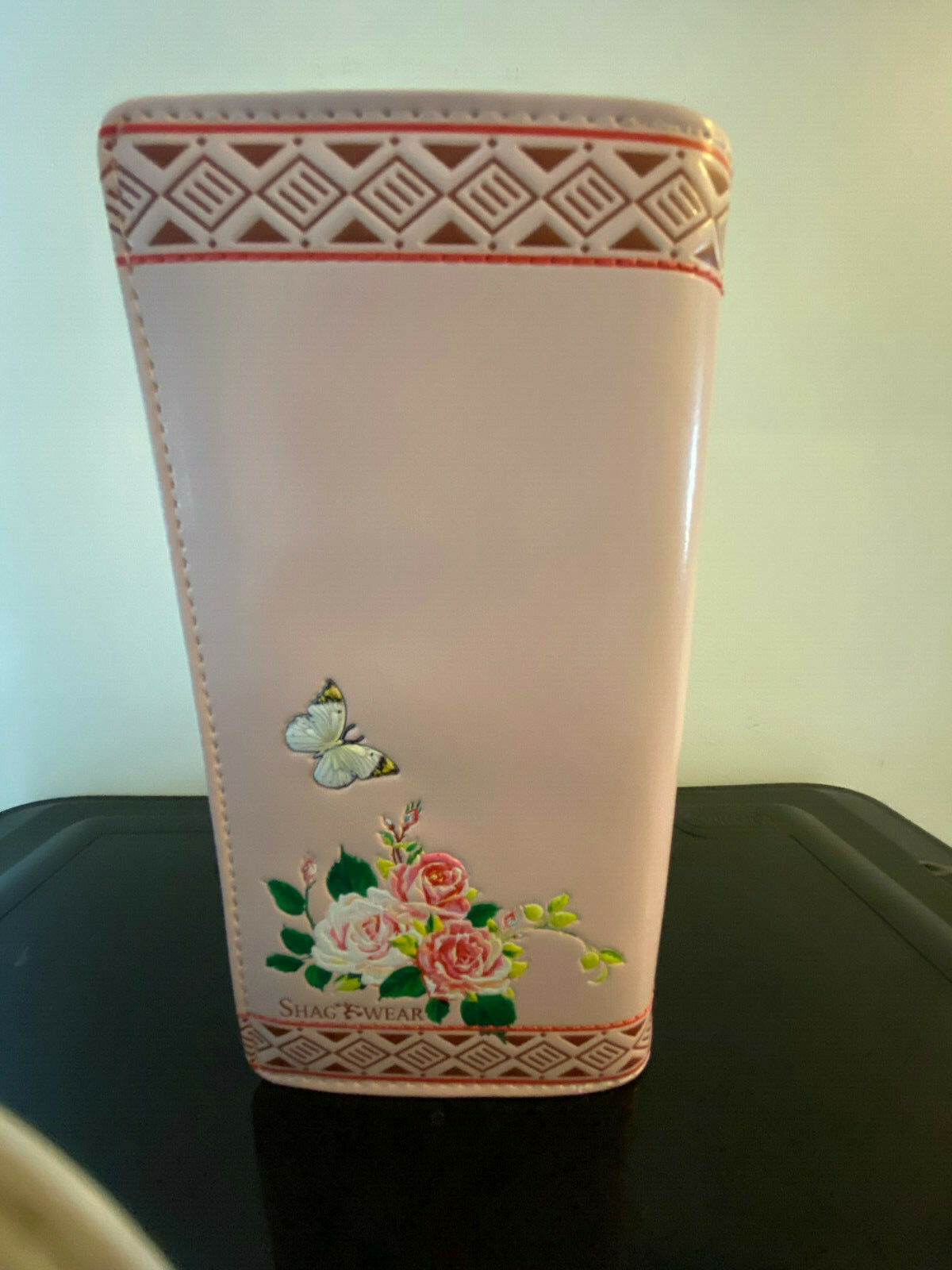 Shagwear Bull Horn w/Butterflies Large Bifold Zipper Wallet Shagwear Wallets are great quality, awesome fun wallets! Holds your cash and cards securely. Features 11 credit card slots, 1 ID card slot, 1 large money pocket, an exterior magnetic snap closure and a large zippered back pocket with divider. Made of faux leather and measures 4 x 7.5 x 1 in. Features: 11 credit card slots, 1 ID card slot, 1 large money pocket Exterior magnetic snap closure Large zippered back pocket with divider Materials: Faux leather Product Dimensions: 4 x 7.5 x 1 in