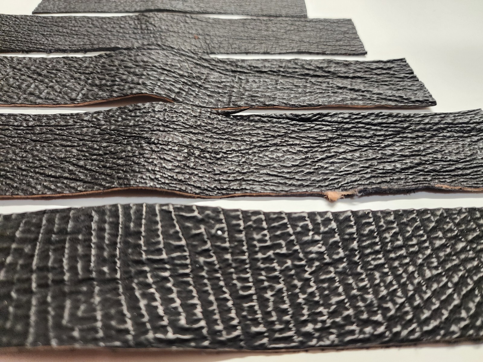 Genuine Shark Skin Remnants Strips In Black Color, Perfect for your smaller leather projects. 9 pieces in total. Free random remnant gift with the order! Measurements and thickness are shown in the pictures. Check out my other listings for many more deals!