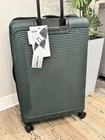 Please check the pictures. Despite its flaws, this luggage is in excellent condition with some scratches and a dent on the bottom and top. However, all zippers and wheels are fully functional for your travels. Travel with confidence with the Sharper Image journey lite 28" hardside spinner. This durable luggage features 8-wheels, 2" of expansion and a retractable iron push button handle. Interior has organizational compartments and exterior is 100% acrylonitrile butadiene styrene (ABS). Exterior dimension with wheels - 19.2" L x 12" W x 30" H Interior dimension - 18.5" L x 11" W x 26.5" H Product weight - 10.73 lbs Exterior 100% durable acrylonitrile butadiene styrene Retractable push button handle Multi-directional 360 degree 8-wheel spinner system Top and side carry handles 2" expansion Interior organization 3 years limited manufacturer's lifetime warranty Asian American & Pacific Islander Owned, Woman Owned 100% Acrylonitrile Butadiene Styrene Spot Clean