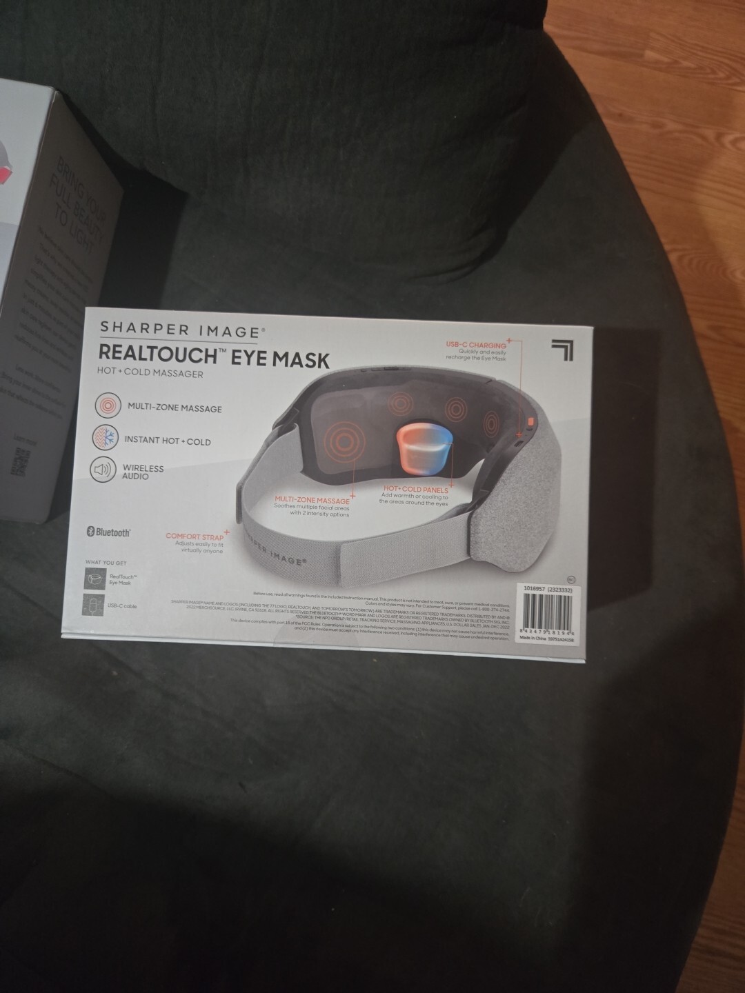 Sharper Image RealTouch Eye Mask Massager Hot & Cold + Bluetooth Grey Open Box.