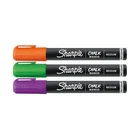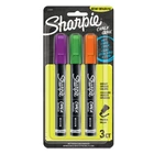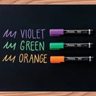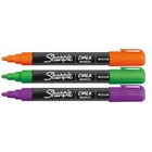 Make your writing or drawing stand out with Sharpie Chalk Markers. These brilliant chalkboard markers mark brightly on black boards, light boards, white boards, windows, glass, and more. And with a damp cloth, they wipe off for convenient cleanup. Depend on these markers for eye-catching displays or writing in the classroom, your business, or home. Create clear, eye-catching marks in bright opaque colors Ideal for use on black boards, glass, light boards, and white boards Wet erase markers wipe off easily with a damp cloth Medium tip Includes purple, green, orange markers