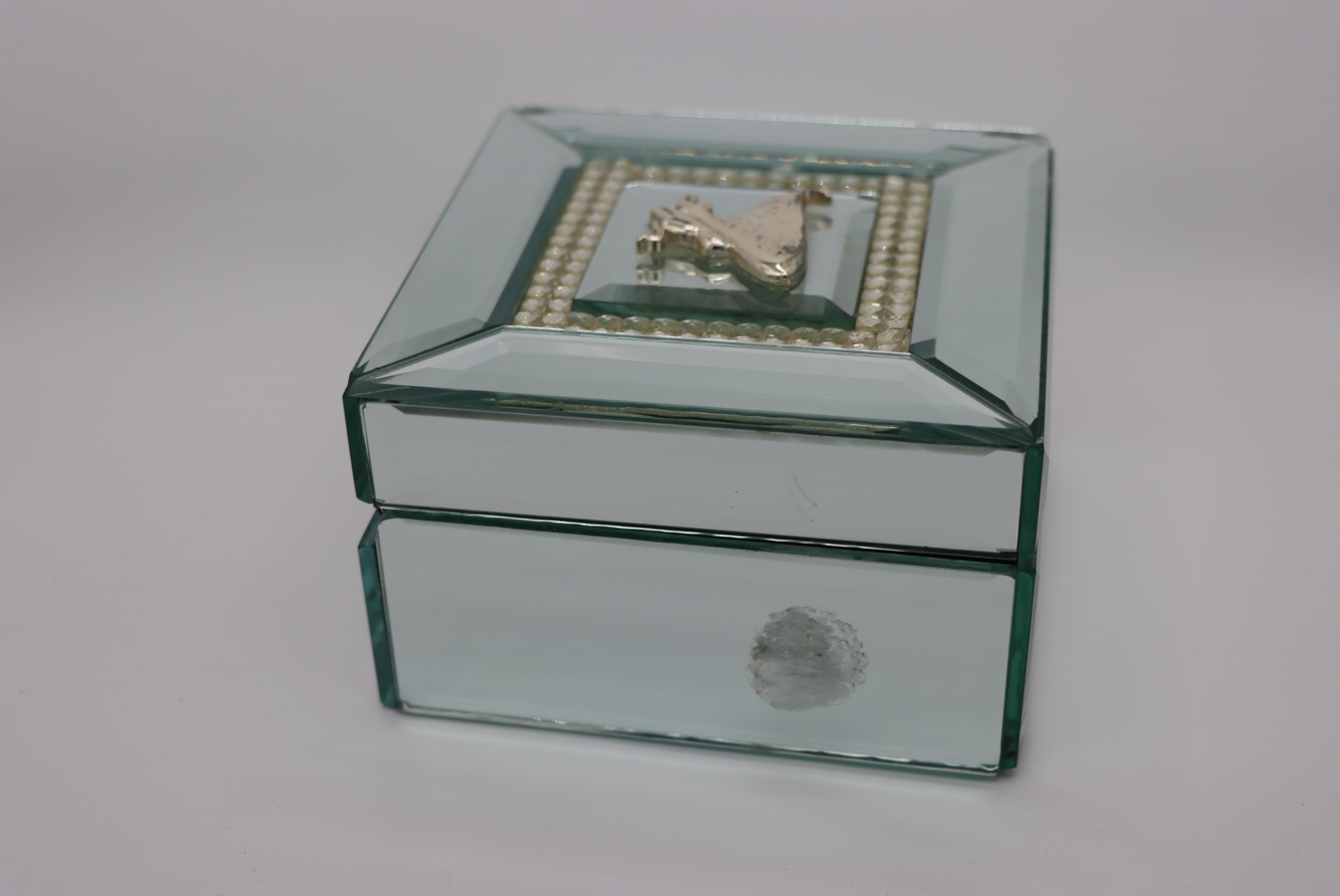Sheridan jewelry box, delicate mirror glass decorative box with dancing figures It is used but in good condition. There is a sticker residue on one side, so it is discounted for this reason. It should come off with a little cleaning. Description Discover elegance with this exquisite Sheridan jewelry box, featuring delicate mirror glass panels adorned with intricate dancing figure designs. Perfect for storing your most cherished accessories, this decorative box combines timeless beauty with functionality. The reflective glass creates a luxurious feel, while the detailed artwork of dancing figures adds a touch of grace and artistry. Whether used as a keepsake box or a statement decor piece, this jewelry box embodies sophistication and charm, making it an ideal gift or addition to any vanity or dresser. Keywords Sheridan jewelry box mirror glass jewelry box decorative jewelry box dancing figures jewelry box elegant jewelry box delicate mirror box decorative storage box keepsake box glass decor box luxury jewelry box sophisticated jewelry box reflective glass box artistic jewelry box timeless jewelry box vanity box graceful jewelry box statement decor jewelry box mirrored accessory box intricate design jewelry box decorative storage elegant storage box graceful decor box gift jewelry box stylish jewelry box artistic storage box collectible jewelry box classic jewelry box