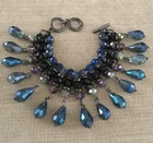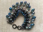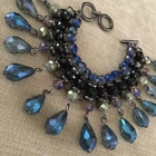 Victorian Inspired Set of 3 Blue Faceted Glass Sparkling Crystal Bracelets Unused Very Good Pre-Owned Condition