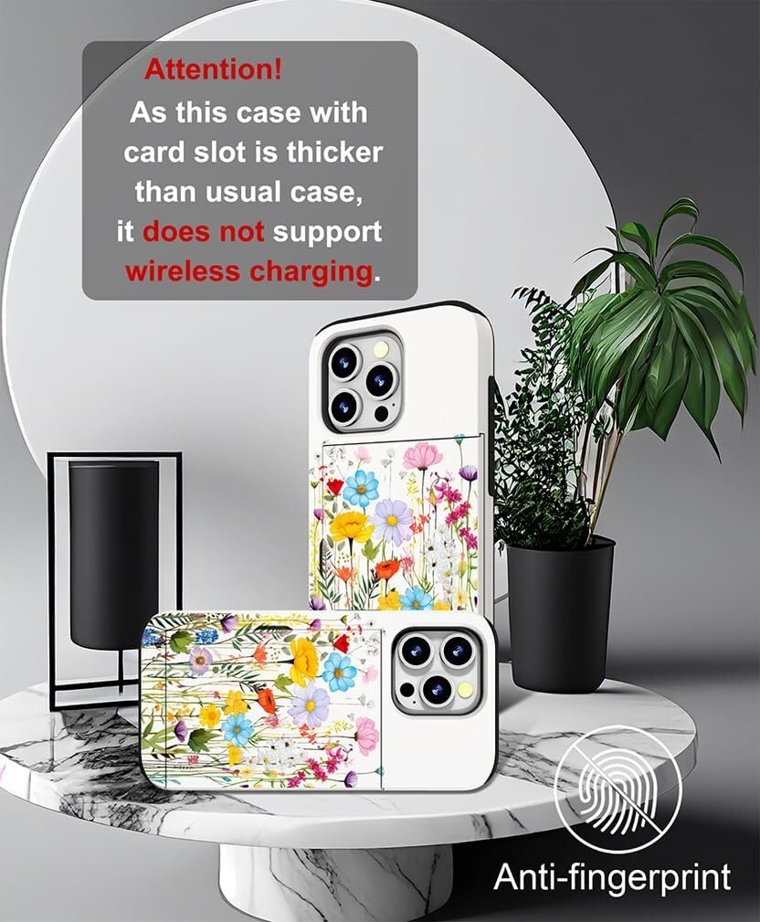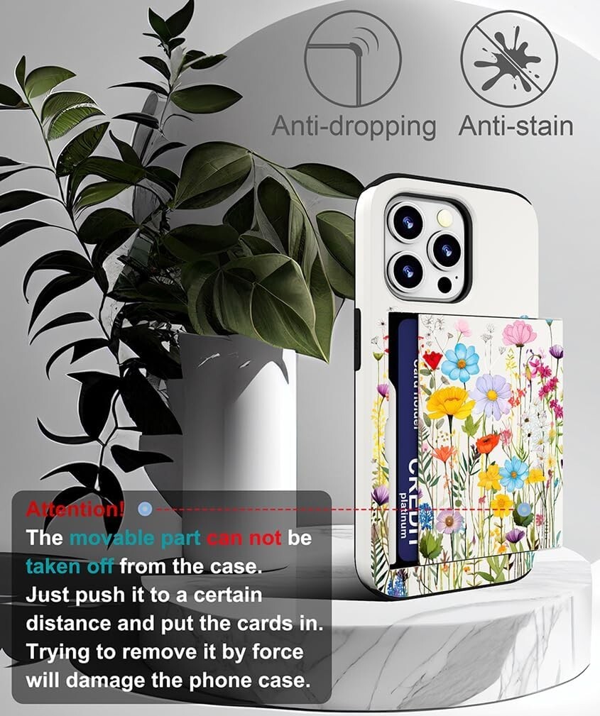 SEE MY OTHER LISTINGS FOR OTHER STYLES AND DESIGNS Elevate Your Everyday with Convenience and Style - Discover the perfect fusion of functionality and aesthetics with our compatible with iPhone 15 pro max case with card holder equipped with a convenient card slot that can securely hold up to 2 cards. This ingenious design ensures your essentials are always within easy reach, streamlining your daily routine. Guardian of Your Device - Step confidently into your day knowing that your device is shielded by heavy-duty protection and shockproof resilience. Engineered to withstand unexpected drops and impacts, our compatible with iPhone 15 pro max case with card holder prioritizes the safety of your valuable technology. With battle-tested durability and scratch-resistant features, your phone maintains a sleek and polished appearance even in the face of daily wear and tear. Cutting-Edge Printing - Our 15 pro max phone case with card holder utilize the most advanced printing technology available, ensuring vibrant and detailed patterns that stand out from the crowd. Experience the pinnacle of design and technology working together to enhance your daily life. Confidence in Your Grip, Clarity in Your Look - Enjoy a secure hold on your device with the anti-slip feature, reducing the risk of accidental drops. Our 15 pro max phone case with card holder goes beyond just protection: it's an extension of your style and personality. The anti-fingerprint coating keeps your case looking pristine, free from smudges and marks, allowing you to showcase your device with confidence. A Touch of Luxury, a Dash of Practicality - In a world where style meets substance, our phone case with a card holder redefines what a protective accessory can be. From the convenience of card storage to the seamless blend of cutting-edge features, every detail is designed to elevate your mobile experience. Embrace the perfect balance of luxury, practicality, and personalized style with a 15 pro max phone case with card holder that goes beyond expectations.