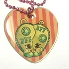 **Contact me to create custom bundles! I will discount multiple item / listing purchases + combine shipping for extra savings!** Cool collection of 4 Shopkins pendant / charm necklaces. Charms are dated 2013. Lot includes: Chee Zee # 4 of 18 on green ball chain, Strawberry Kiss # 5 of 18 on green ball chain , Chelsea Charm # 9 of 18 on pink ball chain and Sneaky Sally # 14 of 18 on blue ball chain. Ball chains measure approximately 28 inches in length and slip easily over the head. Heart pendant / charms are around 1.75 inches in size and stars are about 2 inches in size. Fun lot of Shopkins collectables. Please see photos. Zoom for more detail and assessment of condition. Feel free to contact me with questions. I will create custom bundles & give discounts for purchases of more than one item/listing + combine shipping for extra savings. Quotes provided on request. All sales are final. Returns are not accepted; however your satisfaction is important to me. Please reach out if there is a problem with your purchase. Thanks! PassionatelyCollected I passionately collect things.....
