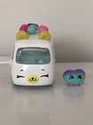 Shopkins Cutie Cars collection. Including Drive Thru’ And Wizzy Soda plus 8 additional cars. All cars are die-cast and have their mini shopkins. Cars included are Cupcake Cruiser Jelly Bean Machine Hotdog Hotrod Jelly Joyride Milk Moover Bumpy Burger Wizzy Soda Zippy Popsicle Peanut Butter pickup