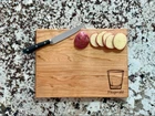 Design: Personalized Shot Glass Cutting Board or Charcuterie Serving Tray All items ship via USPS - please make sure your address is correct :-) Whether used as a charcuterie serving tray for snacks or cutting board, our bamboo, walnut and cherry custom boards are the perfect addition for the home and make the perfect gift for your loved one celebrating a birthday, anniversary, new home, wedding, etc! *** FEATURES *** • SIZES: We have multiple styles and sizes available. To see our current sizes available, click the drop-down menu. The photo slide contains a photo showing each side by side. Please note, the board with the juice groove only has the groove on the front side of the board. • THICKNESS: Bamboo Boards - Approximately 1/2" Thick; Walnut & Cherry Boards - Approximately 3/4” Thick • UNIQUE: Every board is unique with the grain and coloring varying throughout - no board is the same! • CARE INSTRUCTIONS: Hand wash only with warm water. Do not soak. Please apply mineral oil throughout the board’s life. • PERSONALIZATION/CUSTIMIZATION: Do you want the text placed differently on the board? Please don’t hesitate to contact us. All personalization notes can be entered in the personalization box when checking out. • SHIPPING: All cutting boards ship within 2 to 5 business days. • WHOLESALE ORDERS: Please don’t hesitate to contact us for information about wholesale orders. Processing times for larger orders may change. • NOTE: Colors can vary a bit on different monitors and screens. Any props included in photos are not included. Please be sure to double-check your address to make sure it is accurate for USPS delivery. If a package is returned to us due to an invalid address, the buyer is responsible for all additional shipping charges. We appreciate you supporting small business – best wishes! For items ordered with simple edits, we do not send proofs since the layout doesn't change from the example(s). However, in the event there are requests that change the layout from the example(s), we do send proofs for approval before making the product. If you'd like a proof before we make the product, please note so in the personalization box.