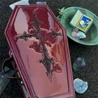 Women Coffin Crossbody Purse Gothic Coffin Cellphone Tote Bag Shoulder Bag PU Leather Bag Features: 1.Quirky Design: Stand out from the crowd with this stylish and quirky Halloween-themed coffin-shaped crossbody bag for women. Its unique design is sure to catch attention and ignite conversations wherever you go. 2.Easy Maintenance: This fashionable coffin satchel purse is made from soft and comfortable PU fabric, ensuring a pleasant tactile experience. Additionally, the material is easy to clean and maintain, making it perfect for everyday use. 3.Compact Size: Despite its compact dimensions of 140mm x 65mm x 220mm, this skull gothic shoulder bag provides enough space to accommodate your wallet, phone, keys, and other small essentials. Stay organized while enjoying the convenience of a portable and practical accessory. 4.Versatile for Various Occasions: Whether it's shopping, traveling, vacationing, or attending parties, this cross crossbody pouch is suitable for a wide range of occasions. It effortlessly complements different outfits and adds a touch of fun and style to any event. 5.Perfect Gift : Ideal for Halloween, women's birthdays, holiday parties, or any special occasion, this y2k cellphone bag makes for a perfect gift. Surprise your friends, girlfriends, wives, mothers, and loved ones with this sweet and trendy accessory. Specification: Main Material: PU Lining Material: Polyester Place Of Origin: HE BEI Province Size:220.00x140.00x65.00mm /8.66x5.51x2.56inch Shoulder strap 132cm