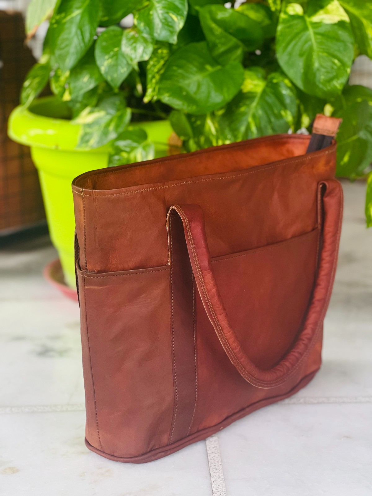 {QUALITY LEATHER BAG} Full Grain Leather: Each bag is individually made using Genuine Full grain goat leather and durable and strong canvas lining and is handcrafted by experienced craftspeople. The bag gets better and better with the time as the leather softens and deepens in color. The tonality color of each bag might vary in accordance with the low and high temperatures from the heart of the Thar Desert. On the bags, a special vegetable oil is applied to give more tonality to the brown color of the bag also making it more resistant to the water. Each bag has its charm and style and a very special earthy smell that will assure you its real leather. Its lightness, flexibility, and durability will not make you regret your purchase. (Leather Surface May Have Disorderly Wrinkles, Scratches That Present the Style of Retro and Wildness) CONVENIENCE AND SAFETY: With Concealed locks under the straps our bags are easy and fast to open and lock. Removable and adjustable shoulder strap gives an option to carry as a shoulder bag or a handbag. With a lockable inner chamber, No need to worry about spilling any contents. STORAGE : With Size 16" width x 12" height x 4" depth ( Fits laptop up to 14 inches), with Two zipper pocket in front and a small pocket in front for cell phones etc. plus 1 inner zipper pocket and 2 small inner pockets , this bag fits almost everything you need to carry to office, college, school or even an overnight trip. EVERGREEN TOTE BAG DESIGN: Now this is one design which can never go out of style. In addition this leather as a characteristic ages wonderfully with use which makes the bags look vintage and unique and Has an removable adjustable strap with shoulder pad for comfortable carry. Has a handle on top for convenience. PERFECT GIFT :With a multipurpose use and a classy distressed Vintage inspired look which never goes out of style, This bag is a great gift idea for Birthdays, Valentine’s Day, Christmas, Graduation, Back To College Or Any Occasion Which Calls For A Gift. Make a great gift for professionals, artists, students and all sorts of officials. The bag can be used as a Leather messenger bag for women ,laptop bags, college bag, meeting bag, gift idea. This is perfect to use as a: messenger bag for men leather, messenger bag for women leather, messenger bag leather, leather golf bag, laptop bag leather, leather bags, leather camera bag, leather cross body bag, business leather bag, messenger bags leather, leather laptop bag for women. (See the picture for more detail) {Shipping} All ordered items will be shipped by FedEx, DHL, TNT, ARAMEX. Tracking number will be provided after dispatching the parcels. Return will be accepted within 30 Days from the date of Delivery to the Buyer. Buyer Has to Pay the Return Shipping Charges. Original Photo May Slightly Wary due to photogenic effect. {Import Duties or Taxes} Please Note Import Duties taxes, Vat, quarantine fees, address change fees, or any other taxes are not included in the item price or in shipping charges. These charges are the buyer's responsibility. You are requested to please check with your country's custom office to determine what these additional cost or taxes etc. before bidding / buying this item(s) {Payment Policy} Payment will be accepted via Pay pal only. {Feedback} We try our very best to make sure every customer is satisfied. If there's a problem, message us before giving negative feedback! We're happy to help. {ABOUT US} We are manufacturer and exporter of leather goods and specialized in Office Briefcases, Office Bag, College School bags, Travel Bag, Handbags, Purses, Wallets, leather journals and diaries; and many more. We use quality leather of Goats and Camel. We offers customize designing and wholesale prices for bulk order. For more details, please write to us. THANKS FOR VISIT OUR STORE HAPPY SHOPPING Track Page Views With Auctiva's Counter