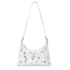 Shoulder Bag for Women, Floral Embroidery Prints Mini Purses, Leather White
