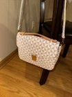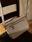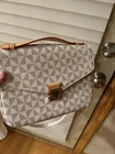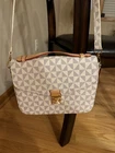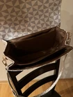 This stylish shoulder bag is perfect for any casual occasion. The geometric pattern and multicolor handle/strap add a unique touch to the black leather exterior. The bag features a zip closure and adjustable strap for comfortable wear. The interior lining is also multicolored and the hardware color is also multicolor. This medium-sized satchel bag is designed for women and has a personalized touch. It is made of leather and has a geometric pattern. The bag is perfect for any casual outing and has enough space to carry all your essentials.