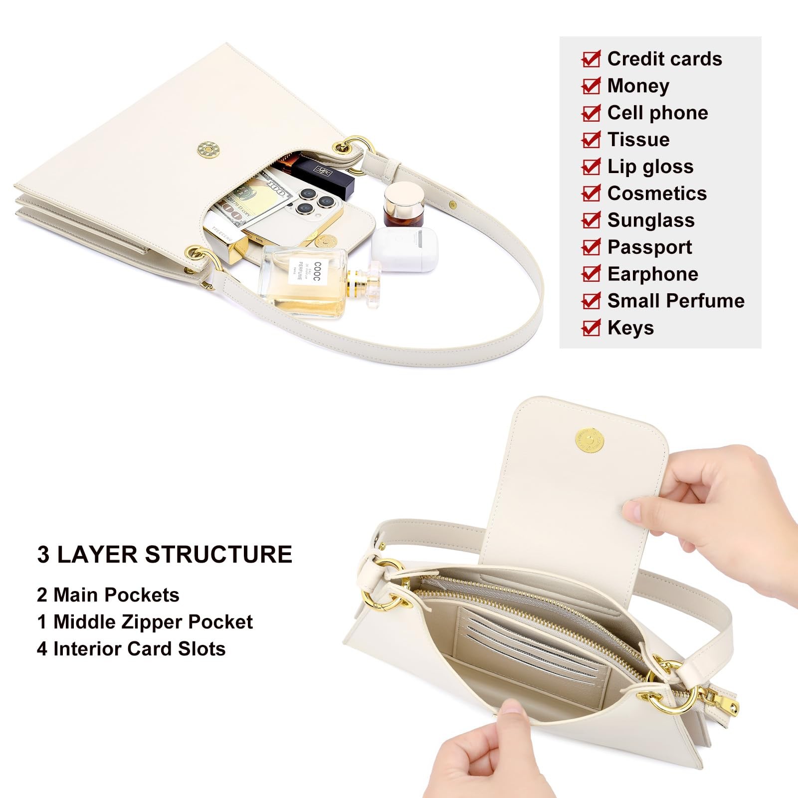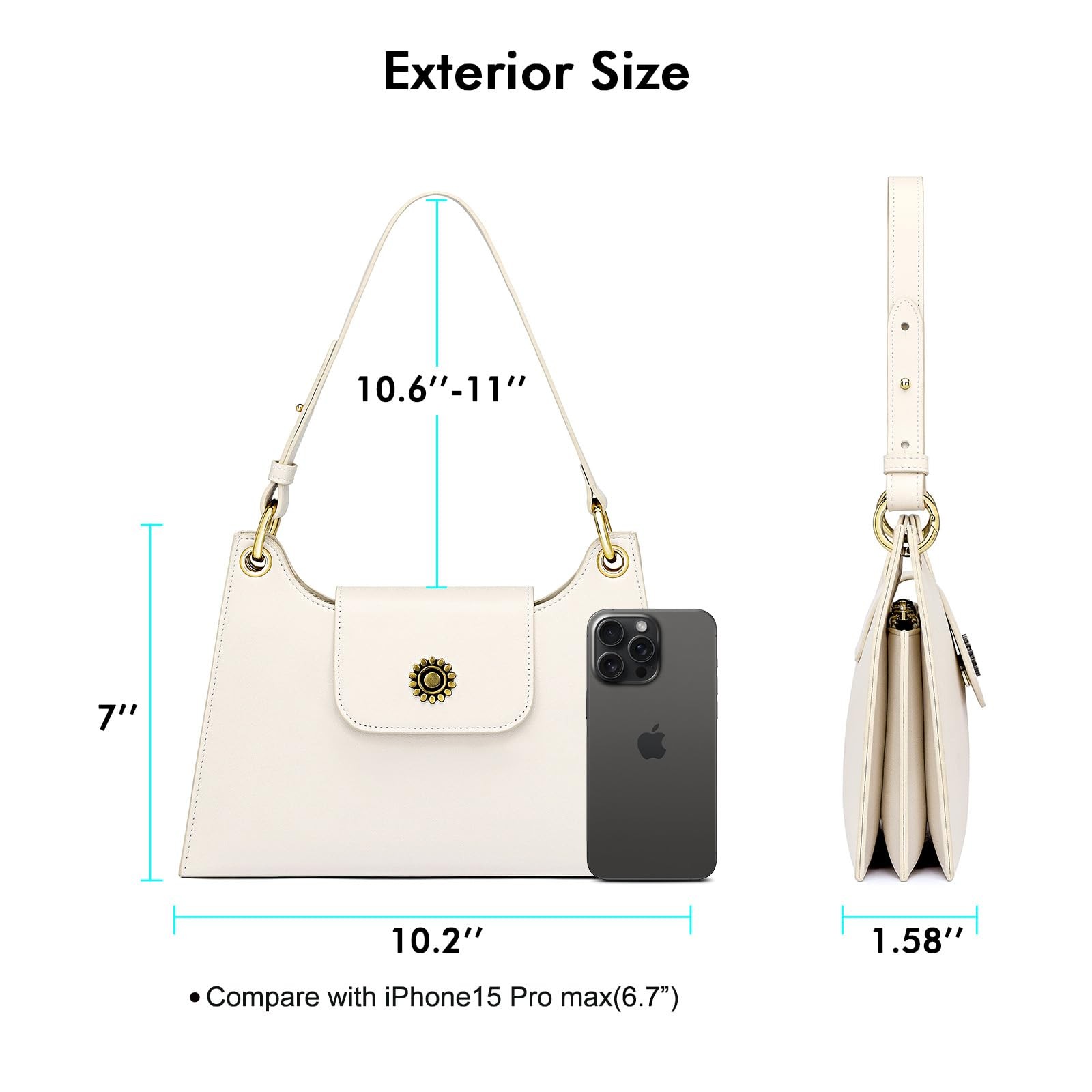 Multi Functional:The women shoulder bag size 10.2'' W × 7'' H × 1.58'' D, with multi pockets design, it has two main pockets, one inner zipper pocket and four card slots inside, easy to store your daily needs, such as keys, credit cards, phone, tissue, lipsticks, passport, glasses etc High Quality Material: Shoulder bag for women is made of selected vegan leather with fine workmanship, no weird smell, durable and easy to clean Easy to Carry: Women's shoulder handbags come with 1 removable and adjustable shoulder strap, you can adjust the length you feel comfortable and the women handbag is only 12oz, no burden for your shoulder Classic Design Suit for Different Occasion:Whether you're going on a dating, commuting, meeting or party, this women shoulder bag is a great accessory for going out. Strong magnetic snap closure on the front provide better protection for your items Ideal gifts for women: hand bags for women 2025 is also a great idea as a special gift present for your loved ones for her birthday, New Year, Valentine's Day, Easter, Mother's Day, Halloween, Thanksgiving and Christmas gifts