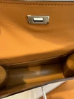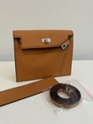 A versatile creative design of one of the most iconic bag. This bag featuring a single adjustable strap that allows it to be worn as a shoulder bag, crossbody, belt bag, backpack or a clutch. Elevate your style with this stunning shoulder bag in gold. Have fun with it and crate your own style. The bag is partially hand crafted. There is a small stain resulting from edge paint smudges, along the stitching line of one of belts (as shown in the picture. NOT the shadows!) It is almost un-noticeable. The bag is technically brand new with dust bag but no box.
