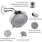 Item D escription Convenient to Install: Designed with universal G1/G2 standard thread, it can be easily connected to most shower tubes. With its elegant and modern appearance, this shower-head upgrades your bathroom. High-Quality Material: Well made of premium ABS and adopting electroplating technology, our shower head is 100% safe and hygienic, not easy to trap dirt and bacteria. Please feel free to use our products. Five Different Sprays: Our superior shower head is designed with 5 different spray modes to meet your daily needs. Suitable for your kids, pets, the elderly, etc. Specifications: Color:Chrome Finish Material: Premium ABS and Electroplating Technology for hygienic safety Dimensions: 11cm x 8cm/ 4.3" x 3.1" Thread: G1/G2 Self Cleaning Nozzles 360° Adjustable Brass Joint 5 Modes - Power Mist, Power Rain, Pulsating Massage, Rain Massage, Rain Mist Features Upgraded Internal Structure Design - Achieve Strong High Pressure Durable & Safe Material - Premium ABS Body Chrome Plated Surface - Beautiful and Anti-rust 5 Different Spray Modes - Enjoy Multiple Shower Experiences Self-cleaning Nozzles - Easy to Clean, Anti-clog Adjustable Brass Ball Joint - Freely Adjust to The Desired Angle Mesh Filter Teflon Tape - Filter sediments, Anti-leak Well-organized Instructions - Easy Installation within Minutes Install & Features G1/2 Connection Thread Adjustable Brass Ball Join (Most Common Standard for Shower Heads) Anti-Clog Jet Nozzles Chrome Plated Bright Surface 5 Spray Patterns Utilize any of the 5 spray patterns by easily changing between them. Massage, Rain, Mist, Rain & Mist, and Rain * Massage. 360° Adjustable Brass Joint Adjust the shower head to any angle using the 360° adjustable join. Also special designed nozzles that self clean and do not get clogged. G1/2” brass connection prevent cracking and leaking, freely adjust the direction of the water spray. Self-cleaning Nozzles 4 inch panel contains 47 Self-cleaning Nozzles and 19 ABS Nozzles for easy maintenance. Package includes: 1 x Shower Heads Handheld Spray High Pressure Adjustable Showerhead Top Spray Bath