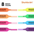Highlighters, Shuttle Art 8 Assorted Colors Highlighter Pens, Chisel Tip Dry-Quickly Non-Toxic Highlighter Markers for Adults Kids Highlighting in the Home School Office ASSORTED COLORS FOR MULTIPURPOSE: Shuttle Art 8 bright fluorescent colors highlighters, including yellow, green, blue, pink, purple, violet, orange and bright orange, a perfect set for kids and adults emphasizing info on textbooks, faxes, copies, newspapers and assorted planners. NO BLEEDING & LONG-LASTING: Premium quick-dry ink drawing on words stay crisp and clear without smearing, leaking, fading or bleeding (let ink dry before highlighting). Each liquid highlighter is equipped with a durable pen cap to prevent ink from drying out for long-lasting use. Shuttle Art highlighters conform to ASTM-D4236. VERSATILE CHISEL TIP: Shuttle Art highlighter set with versatile and durable chisel tips are perfect for both broad highlighting and fine underlining with different needs. Narrow barrel shape of comfortable holding makes it suitable for both kids and adults. PERFECT GIFT CHOICE: These assorted highlighters are neatly organized in a compact package for easy taking along. Colored design allows you to recognize and identify each color easily. Trendy pastel colors are well popular among teens make the highlighters set a smart choice as back to school gift idea. SERVICE GUARANTEE: Your satisfaction is our top priority, please rest assured to purchase our products. If you are not satisfied with our products or have any questions, please feel free to contact us at any time.