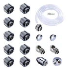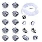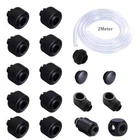 Technical Data: Feature - Quantity: 19 pcs/packet Soft Tube Fittings * 10pcs 90 Degree Rotary Fittings *2pcs Switch*1pcs Plugs *2pcs 3-way Fitting * 1pcs Male to Male Fitting *1pcs Hose Tube * 2M -Use for Hose, Soft PU Tube, Silicone Tube. -Hand Compression Connector Fitting - Material: Brass - Color: Black/Silver/Titanium Appearance Size: