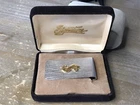 This money clip by Signature is a vintage American accessory perfect for men who appreciate a classic look. It features a 3-D design with a dollar sign character and is made of metal with a rhodium finish. The clip comes in its original box and is ideal for those who love to collect unique items. The money clip is suitable for any occasion and can be easily attached to a wallet or a bag. Its silver and gold colors give it a luxurious appeal, while the accents and design add a touch of elegance. This item is a must-have for anyone who loves vintage accessories and wants to add a touch of American history to their collection.