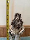 This exquisite sculpture by Dino Bencini depicts Moses holding the 10 Commandments in clay medium. The piece is signed by the artist and boasts an unknown style and production technique. The statue stands at 9.5 inches tall and 3.75 inches wide, making it a perfect addition to any collection. The sculpture is an original piece and is not a licensed reproduction. The item is located in Italy and is perfect for art collectors and enthusiasts alike. See pictures for condition of sculpture. There is cracking on the bottom of the right foot which does not affect the piece. This may have occurred during the sculpting process.