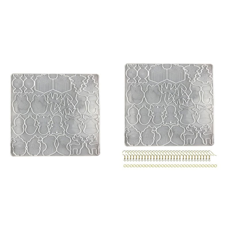 Features: brand new and high quality Safe silicone material: These molds are made of high-quality silicone and are non-toxic. Smooth interior: The interior of these molds is smooth, so the resin material is smooth and flat without uneven flaws. You can add glitter powder, mica powder, liquid resin dyes, dried flowers, cards with cute/pretty patterns or other for creative accessories to the resin to make the creation more diversified. Non-stick: non-stick, easy to separate and clean, recyclable. Different earring molds with holes, such as snowman, old man, Christmas tree, elk, bell, socks. Very suitable for making pendants, earrings, jewelry, auto parts, for key chains, etc. Specifications: Color:Clear Material: Silicone Size: 26.3x24.3cm/10.35x9.56in Quantity:1Pc/1 Set Package Includes: Package A Includes: 1x Earring Silicone Mold Package B Includes: 1x Earring Silicone Mold 30x Earrings 30x Split Ring note: Please allow a little error on the size due to manual measurement. The color might exist slightly difference due to different displays.
