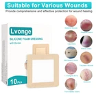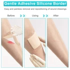 COMFORTABLE HEALING: The bordered foam dressing features a super-absorbent core that effectively absorbs dead tissue cells without adhering to wet wounds, significantly reducing pain and trauma during dressing changes. With its 5-layer absorbent core (including an extra 4mm absorbent layer), the foam dressing can absorb 25-30 times its weight in wound exudate in a single use. This capability greatly extends the dressing’s lifespan and no need to make frequency changes. WATERPROOF & BREATHABLE: The self-adhesive, multi-layer structure of the silicone border foam allows oxygen and water vapor to pass through, enabling the wound to breathe while maintaining a moist and healthy environment conducive to healing. The dressing remains comfortable for extended wear, avoiding stickiness and protecting faster wound recovery. Its outermost layer is both waterproof and breathable, protecting the wound from contamination and supporting effective healing. RAPID ABSORPTION OF EXUDATE: The silicone foam dressing 4x4 has a six-layer structure: polyurethane film, absorbent core, 4mm absorbent layer, non-woven layer, PU pad, and hypoallergenic silicone contact layer. This design allows it to rapidly and effectively absorb wound exudate, converting it into a gel and securely locking it in place. It minimizes skin maceration and features a soft, extra-thick foam pad that perfectly fits the wound contour, providing optimal pressure buffering and protection. GENTLE AND NON IRRITATING ADHESION: The wound dressing utilizes A++ grade hypoallergenic soft silicone, which is exceptionally gentle and non-irritating, making it ideal for fragile wounds and sensitive skin. Additionally, the wound silicone bandages incorporates a high-quality, skin-friendly adhesive that adheres firmly without shifting, ensuring stability during use. Upon removal, it leaves no residue, and its design allows users to comfortably adjust the dressing’s orientation based on the wound’s condition. WIDE APPLICATION: We offer FSA/HSA-eligible foam silicone dressings in various sizes. Each silicone dressing is individually packaged, ensuring hygiene and convenience for storage, carry out and use. These wound bandages are suitable for a wide range of applications, including surgical incisions, bedsores, sacral pressure sores, leg ulcers, neuropathic ulcers, arterial ulcers, diabetic foot ulcers, traumatic wounds, abrasions, and Ⅰ-Ⅱ degree burns, etc.