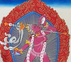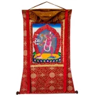 Namaste and Welcome to my Gallery!!! All of the paintings and arts in my gallery are originally handmade and hand-painted by my family members and other local artists who have been practicing their craft for over two decades. My father is Master Artist from Nepal with an experience of more than four decades; you can see some of his work in this Gallery. Also you can see some of the beautiful and soulful artwork of talented local artists from Himalayas. ~~Silk Brocade Vajrayogini Thangka~~ Vajrayogini is the goddess of grace and destruction, destroying illusion and the ego. She is typically depicted in fierce form, colored blood red. She wears a necklace of skulls and holds a skull cup and flaying knife in her hands. Surrounding her are cremation grounds. She is also a dakini, a term that describes a female supernatural being or an accomplished yogini, and is considered the queen of the dakinis. About Silk Brocade Framing:- Silk brocading is a process of framing a Thangka in traditional Tibetan style. The frame is made of beautiful silk fabric having rich colors and patterns. The silk fabric protects the edges of the Thangka, and also makes it easier to hang. A thin silk cover protects the painting when rolled, and may be gathered up to display the painting when hung on the wall. It is generally thought that silk brocade renders a Thangka more attractive and more religious. [Size = 89cm x 62cm] Material Used: • Cotton Canvas • Natural Pigments and colors • Gold leaf • Silk fabric ~Excellent for meditation or home/office decor, ~Tibetan Yoga Wall Art ~Genuine 100% hand-painted from Himalayas Please feel free to contact me if you have any question regarding the painting.