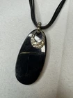 Add a touch of elegance to your outfit with this beautiful Silpada Sterling Black Onyx Pendant. The pendant features a stunning oval-shaped black onyx stone, surrounded by a beaded ball design. The pendant is made of 925 sterling silver, and is signed by the brand for authenticity. This necklace is perfect for those who love to make a statement with their jewelry. The black onyx stone is the star of the show, and is complemented by the intricate beaded ball design. The leather necklace adds a touch of texture and durability to the piece. This necklace is perfect for any occasion, and will be sure to turn heads. It measures 21 inches long and there are 3 inches of adjustable section. This is being sold as is and as marked. The markings of 925 are shown in the photos. The sterling could use a cleaning as it has some darker spots. The piece has minimal surface scratches from wearing it.