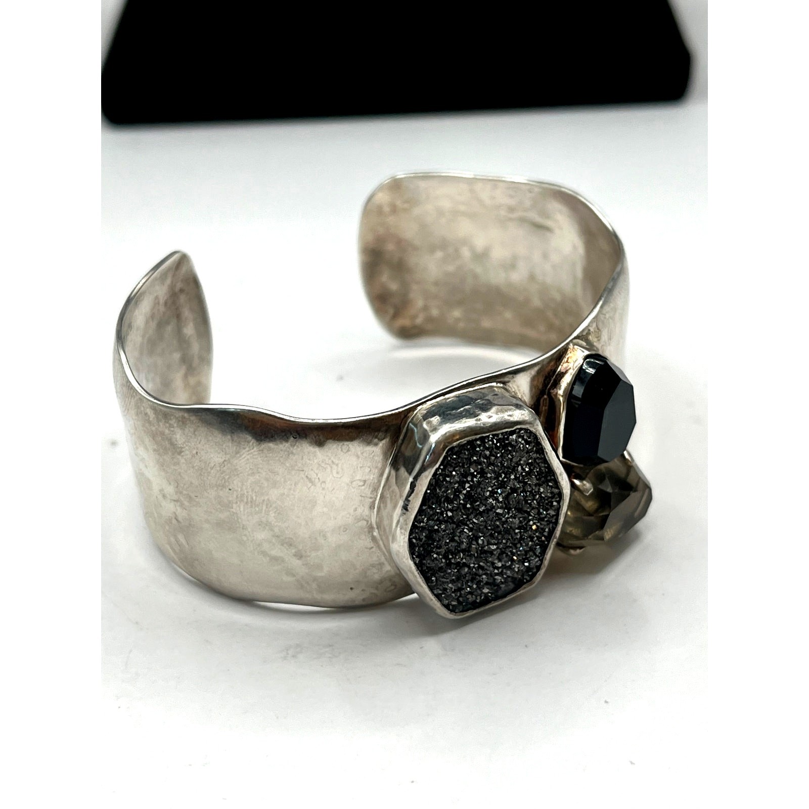 Gorgeous Silpada 925 Sterling Silver "Crystal Cave" Druzy, Quartz Cuff Bracelet. Set in cabochon onyx, quartz and druzy, this bracelet measures 7 inches and could be adjusted slightly. Looks stunning with any outfit.