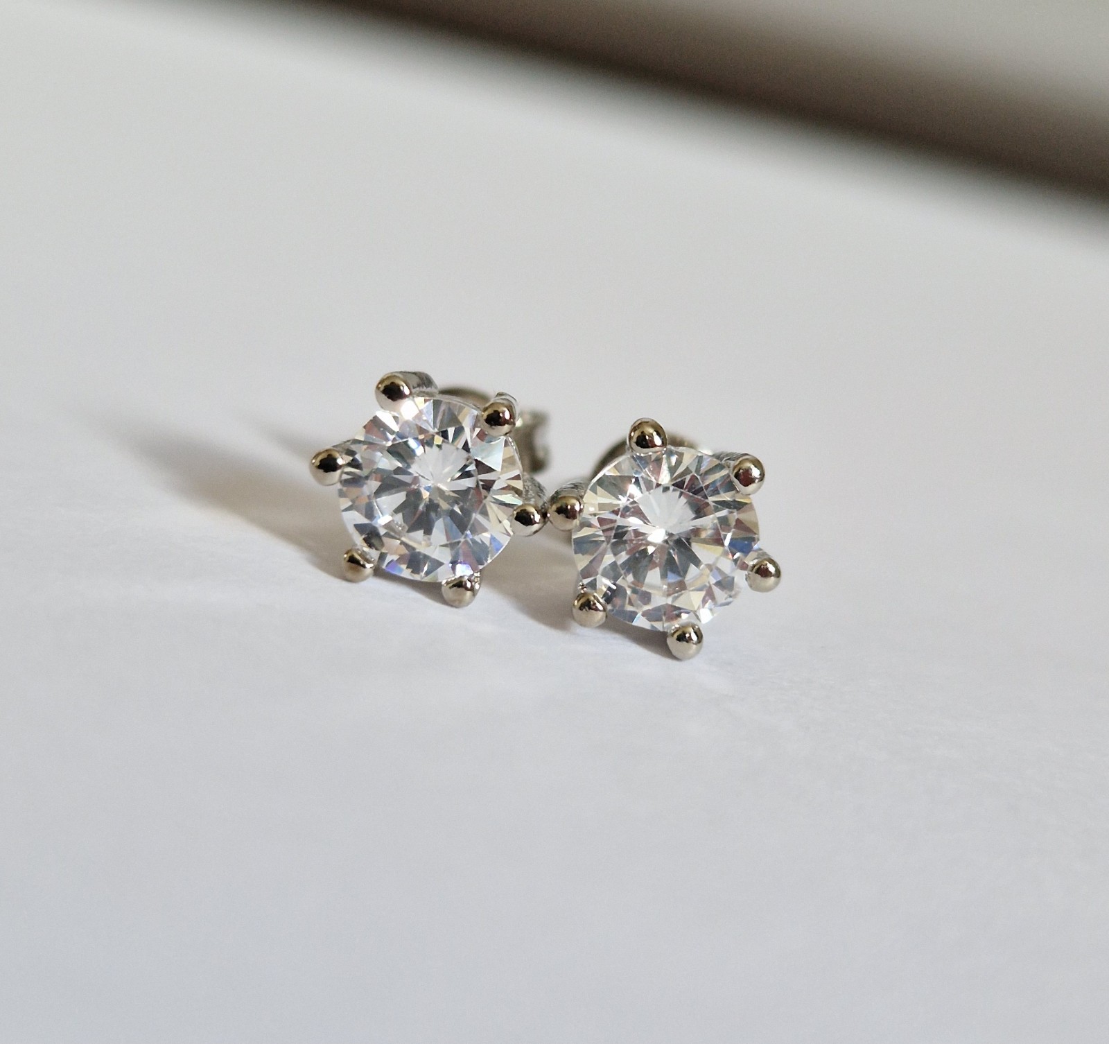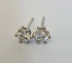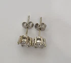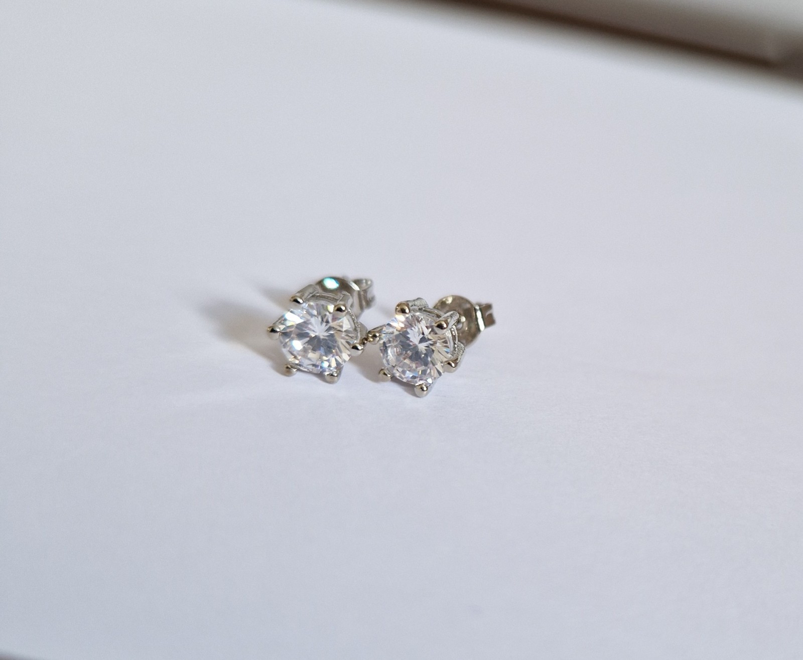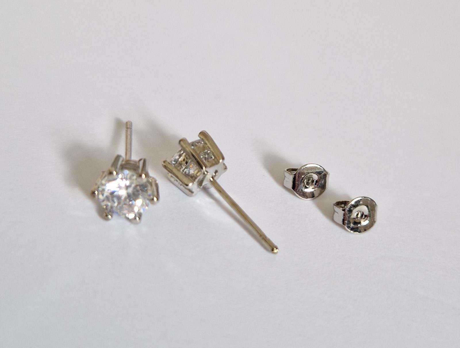 These stainless steel earrings feature 5mm clear cubic zirconia stones set in stainless steel. The stud style earrings are very pretty and versatile, perfect for everyday wear. The prong setting adds a touch of elegance to the design, making them a great addition to any jewellery collection. Made in China, these never-worn earrings are a timeless and classic accessory. Leftover stock from closed online business. 7 pairs available.