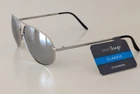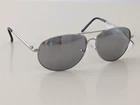 West Loop Aviator sunglasses in a sleek silver frame. Rectangle silver mirrored polycarbonate lenses offer 100% UVA-UVB protection Silver metal frame with black plastic temple tips. Lens Height: 45 mm Lens Width: 60 mm Temple - Arm Length: 135 mm Front of glasses temple to temple: 140 mm I only mail within the USA. 466
